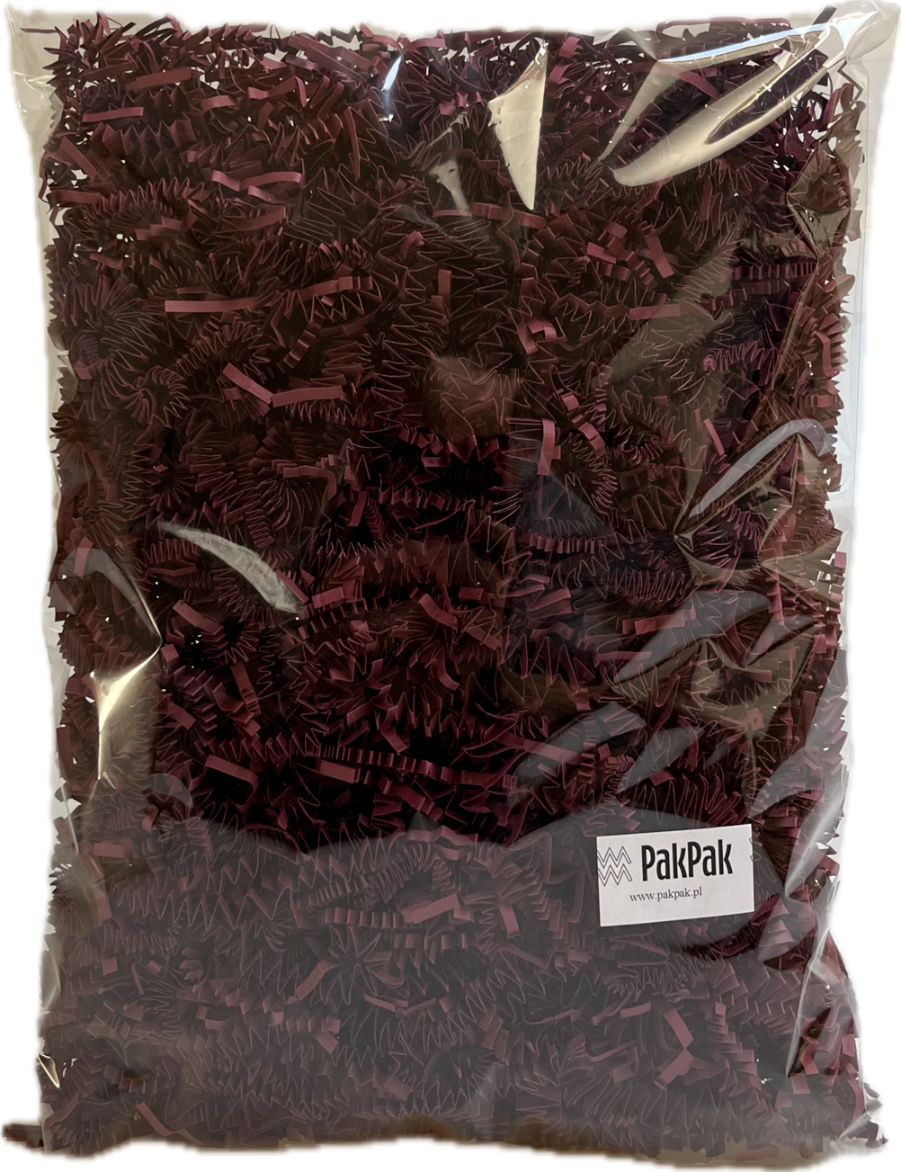 Ekologiczny, ozdobny wypełniacz do paczek PakPak w kolorze burgundowym. 0,1kg